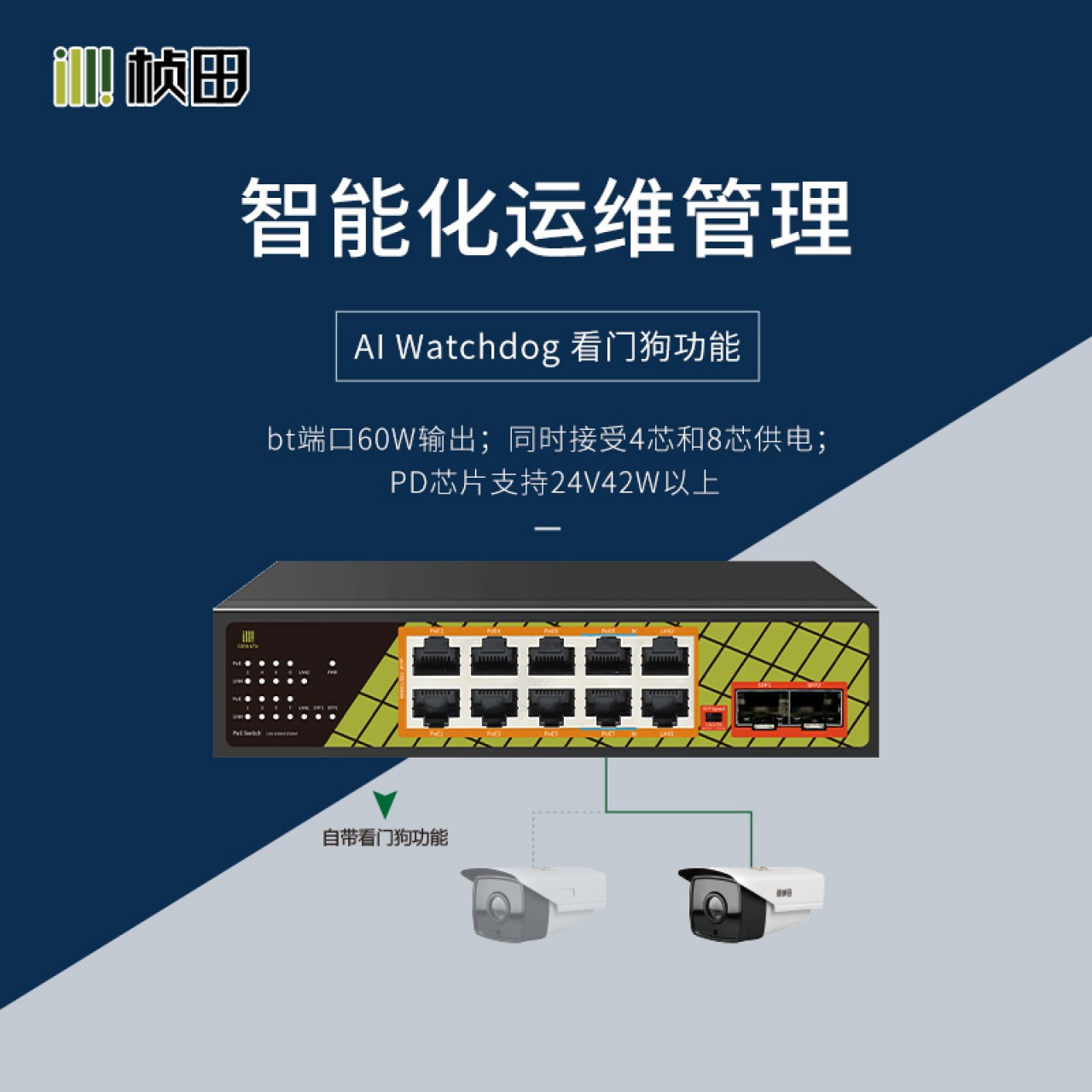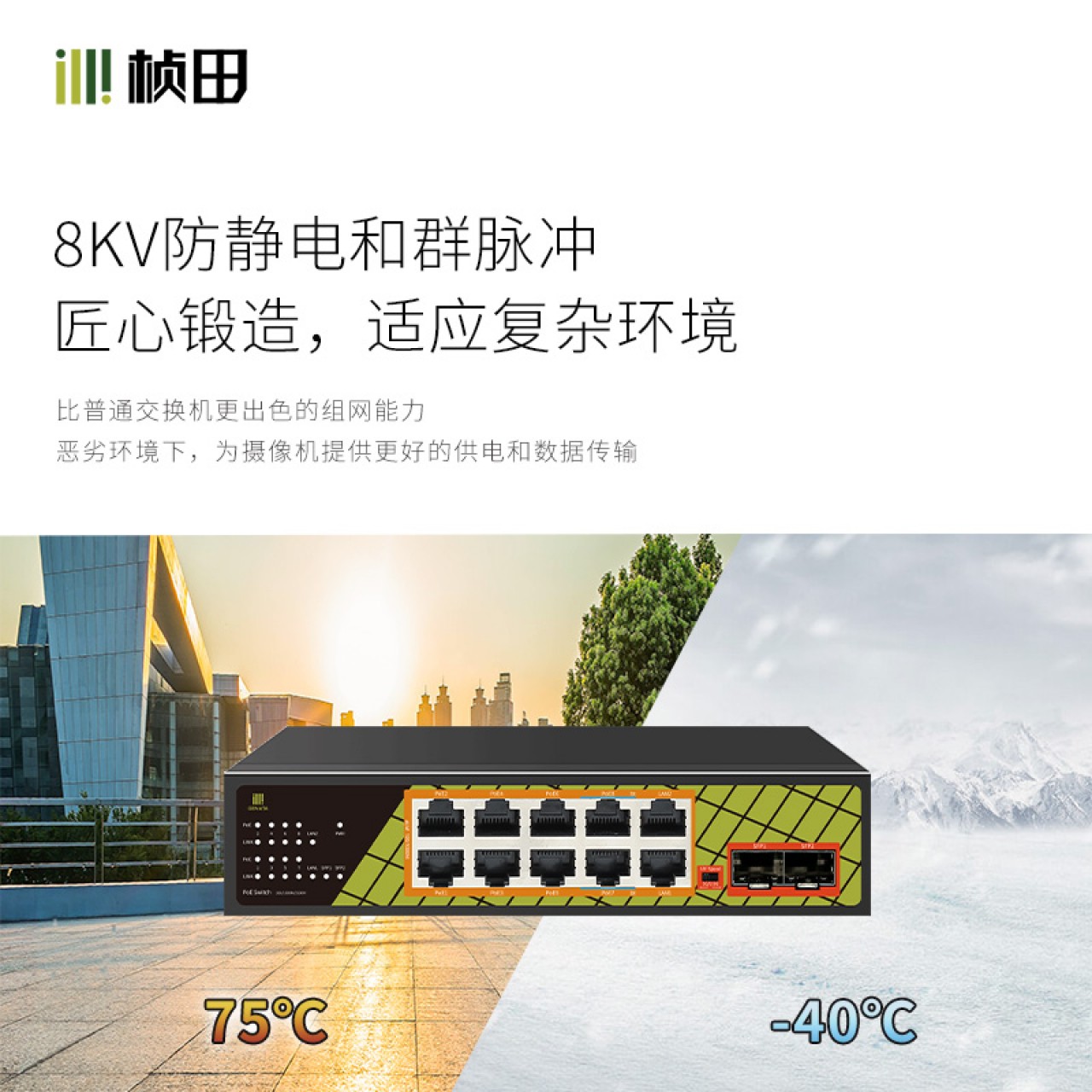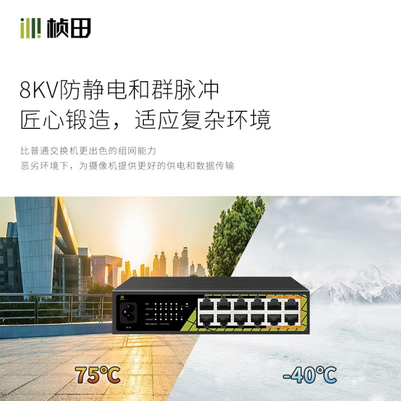 桢田10+2上联千兆POE交换机 GNT-ES12UD-P10