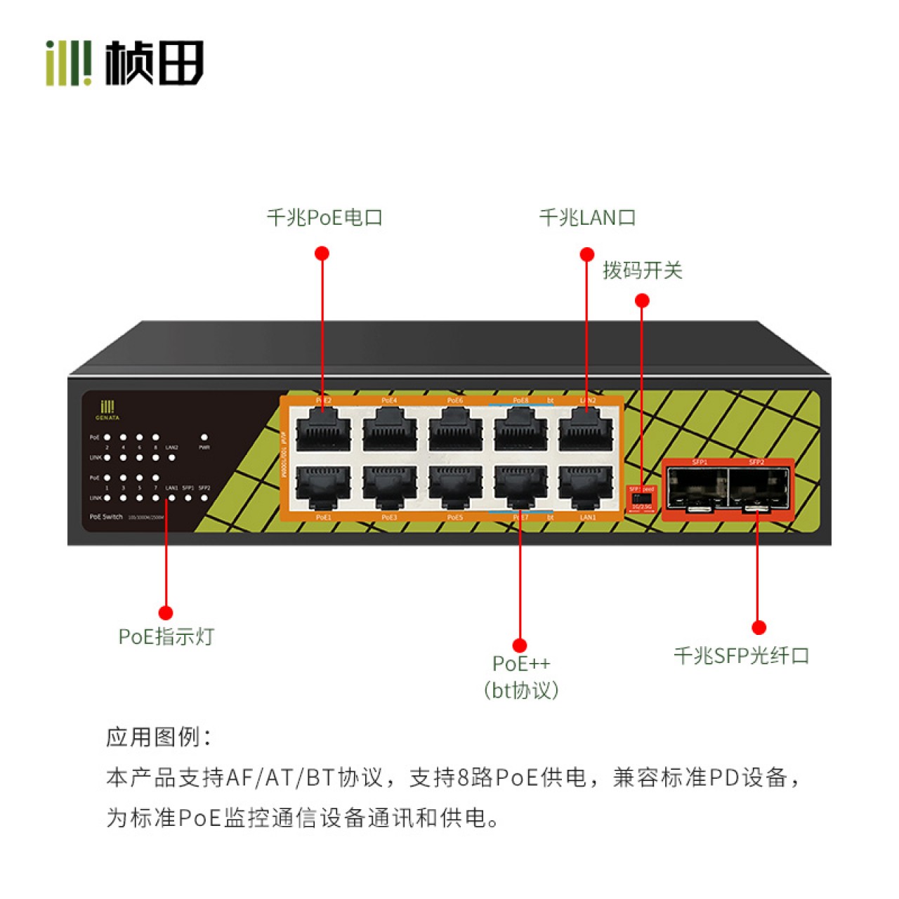 10口百兆POE交换机(2E+2EP6+6EP/120W)塑铝外壳GNT-P9210ES