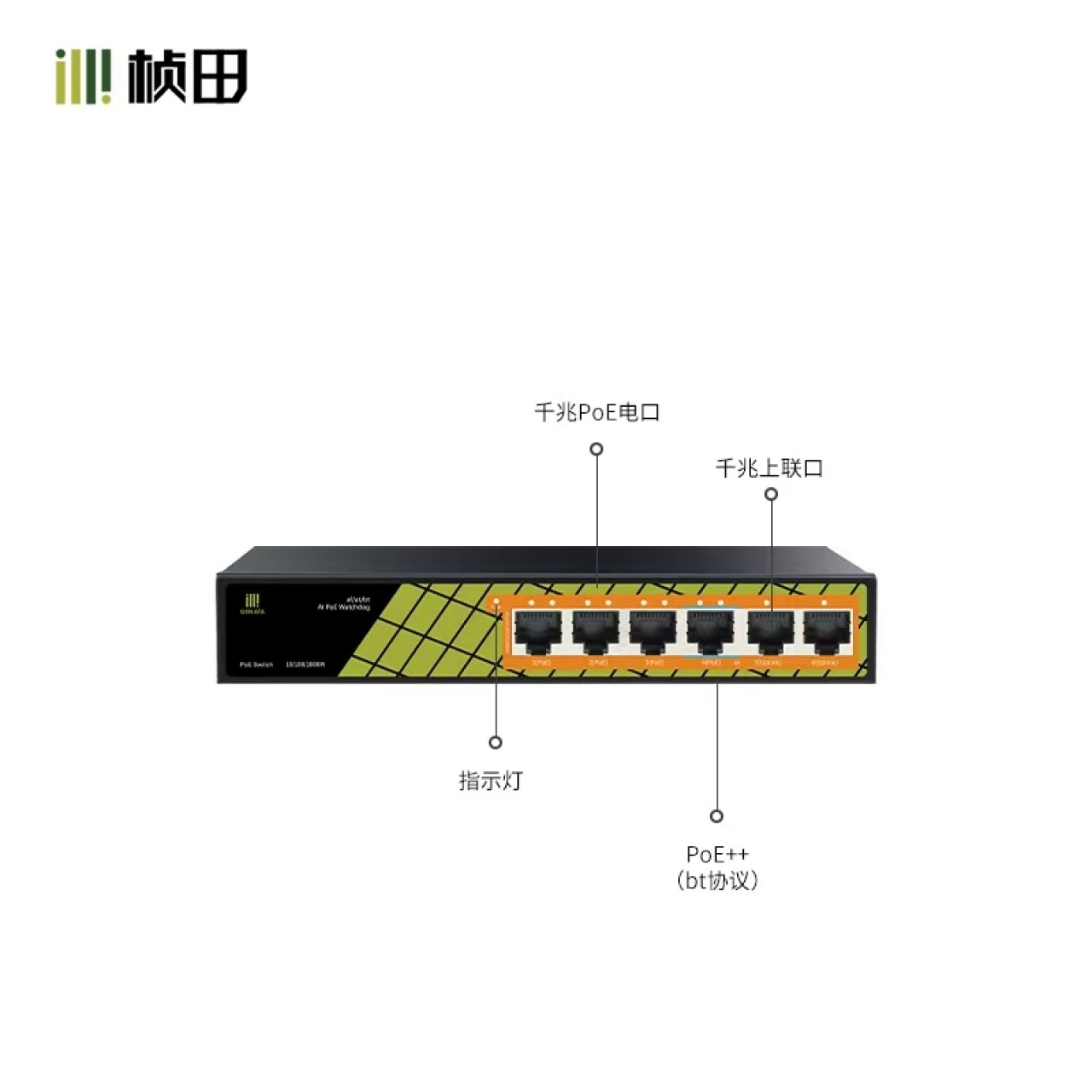 6口全千兆POE交换机 铁壳GNT-ES06GD-P