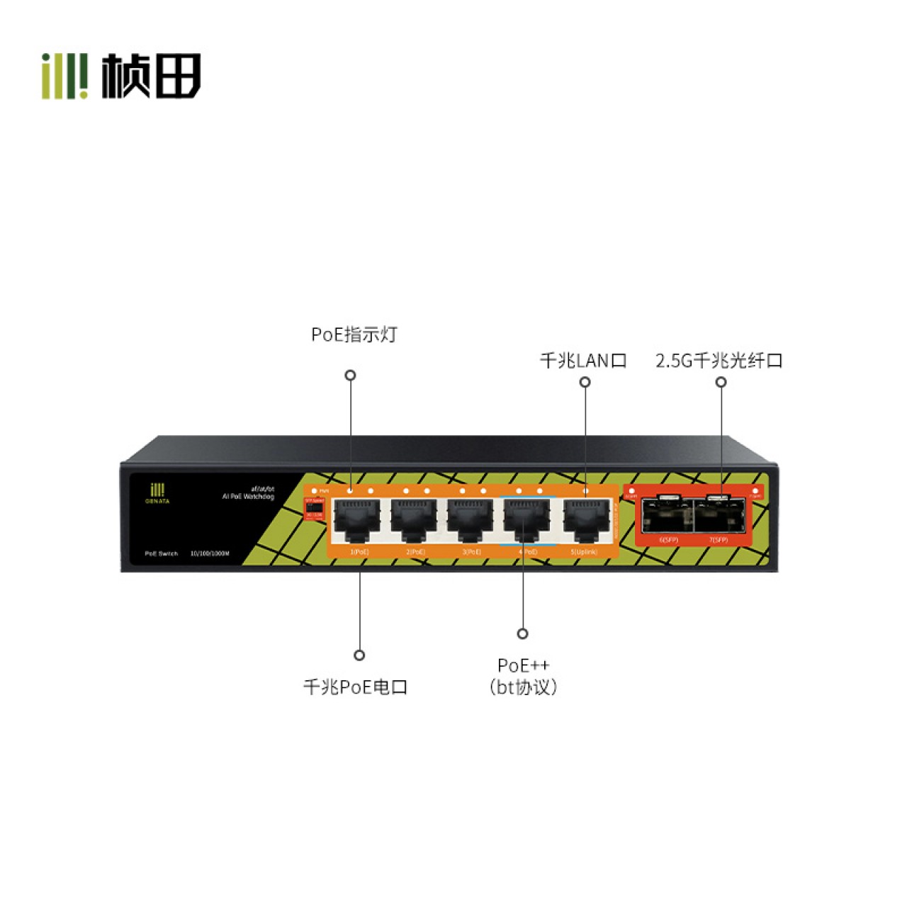 2.5G2光5电全千兆POE交换机 铁壳GNT-ES07GDS-P